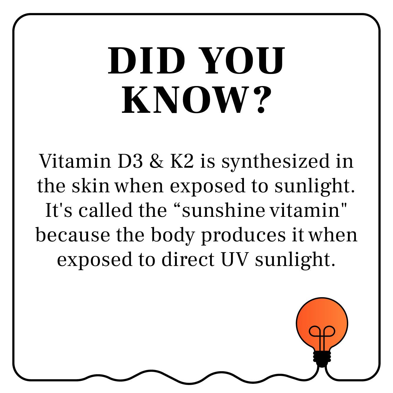 Vitamin D and K work together to strengthen bones, promote heart health, and facilitate proper absorption of calcium. These two vitamins complement each other, as Vitamin D enhances the production of Vitamin K for optimal distribution of calcium. Together, they form an essential partnership to promote a healthier life!