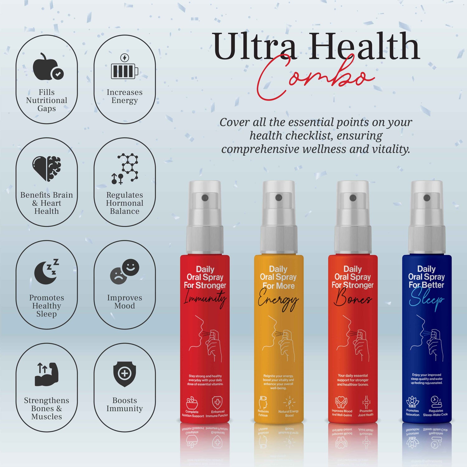 Add the essential Oriygen Melatonin Spray for a restful night's sleep to the Optimal Health combo, transforming it into the Ultra Health Combo—a premium package at an unbeatable price. With our Ultra Health Combo, you’ll cover all the essential points on your health checklist, ensuring comprehensive wellness and vitality.